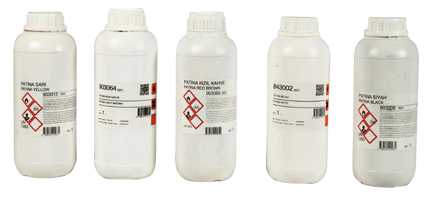 پتینه ها شامل پتینه های خمیری، پودری و مایع می باشد که هر کدام از این پتینه ها با توجه به کار مورد نظر، استفاده می شوند. انواع پتینه ها جهت کارهای کلاسیک و مدرن، روکشی و پوششی در شرکت موجود می باشد که جهت اجرای هر کدام از پتینه ها لوازم جانبی مورد استفاده و حلال های آن موجود می باشد . پتینه ها از بهترین برند های ترک و اسپانیایی می باشد.